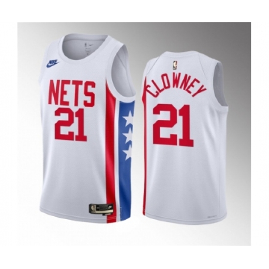 Men's Brooklyn Nets #21 Noah Clowney White 2023 Draft Classic Edition Stitched Basketball Jersey