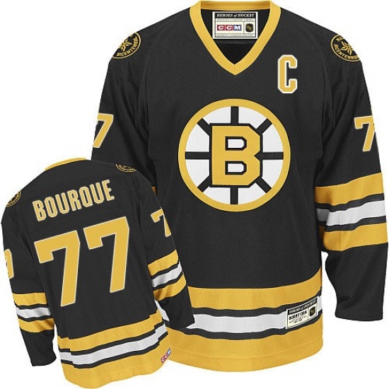 Men's CCM Boston Bruins #77 Ray Bourque Authentic Black Throwback NHL Jersey