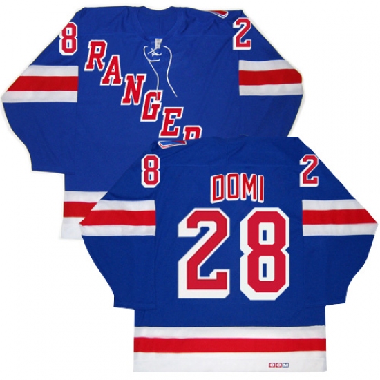 Men's CCM New York Rangers #28 Tie Domi Authentic Royal Blue New Throwback NHL Jersey