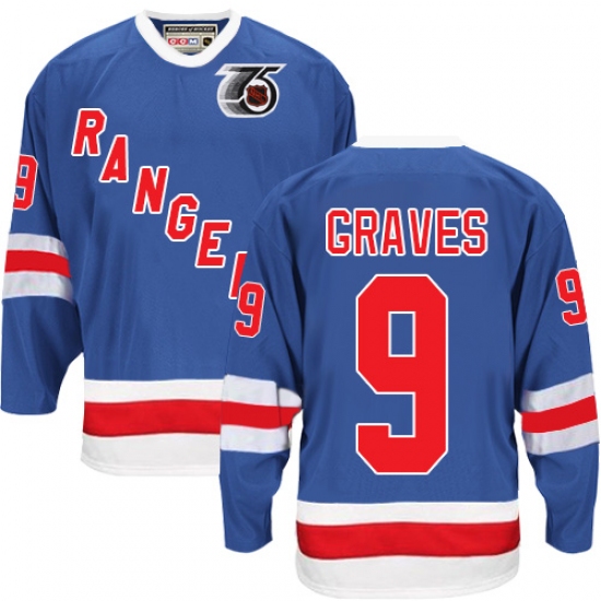 Men's CCM New York Rangers #9 Adam Graves Authentic Royal Blue 75TH Throwback NHL Jersey
