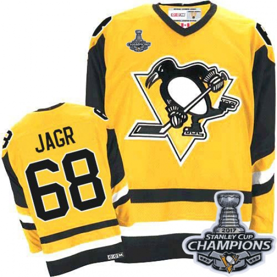 Men's CCM Pittsburgh Penguins #68 Jaromir Jagr Authentic Yellow Throwback 2017 Stanley Cup Champions NHL Jersey
