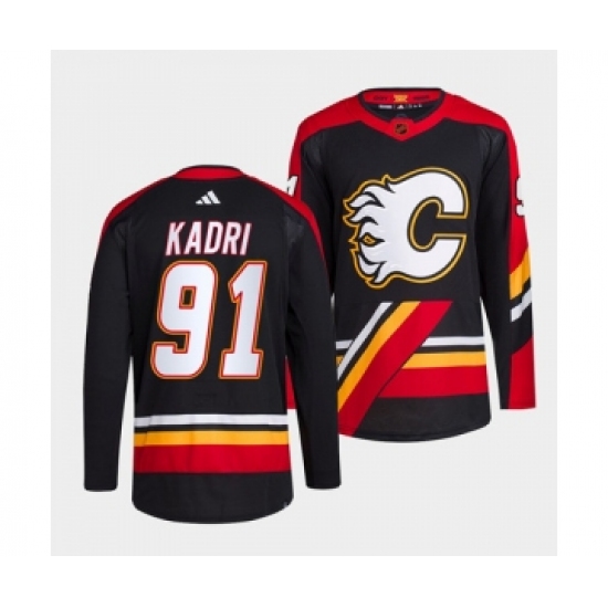 Men's Calgary Flames #91 Nazem Kadri Black 2022-23 Reverse Retro Stitched Jersey