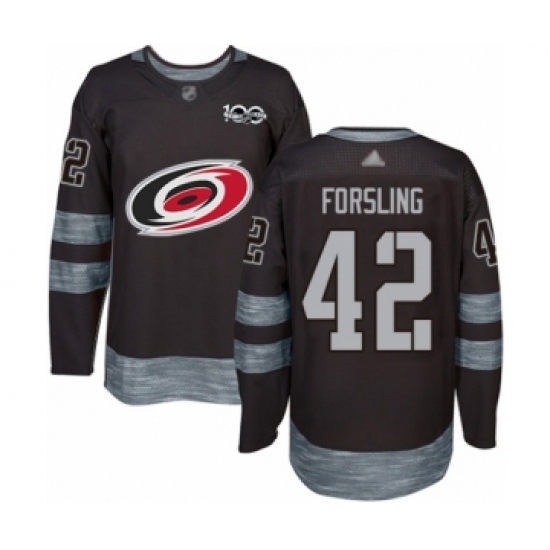 Men's Carolina Hurricanes #42 Gustav Forsling Authentic Black 1917-2017 100th Anniversary Hockey Jersey