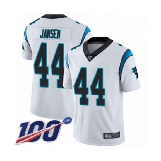 >Men's Carolina Panthers #44 J.J. Jansen White Vapor Untouchable Limited Player 100th Season Football Jersey