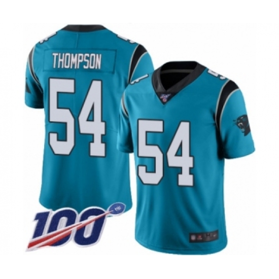 >Men's Carolina Panthers #54 Shaq Thompson Limited Blue Rush Vapor Untouchable 100th Season Football Jersey