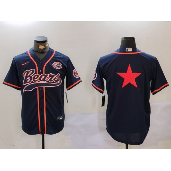 >Men's Chicago Bears Blank Navy Blue With Cool Base Stitched Baseball Jerseys