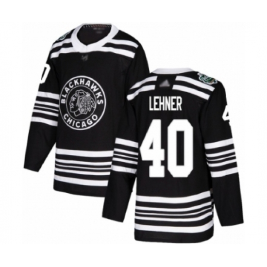>Men's Chicago Blackhawks #40 Robin Lehner Authentic Black 2019 Winter Classic Hockey Jersey