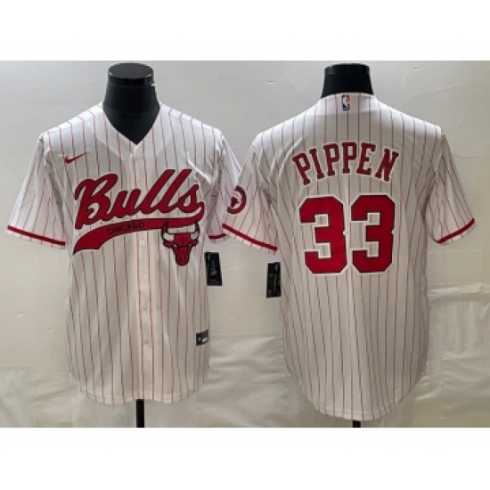 Men's Chicago Bulls #33 Scottie Pippen White Pinstripe Cool Base Stitched Baseball Jersey