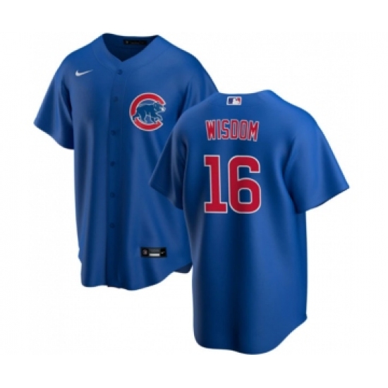 Men's Chicago Cubs #16 Patrick Wisdom Blue Cool Base Stitched Baseball Jersey