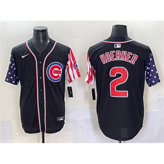 >Men's Chicago Cubs #2 Nico Hoerner Black 2025 Independence Day Vapor Premier Limited Stitched Baseball Jersey