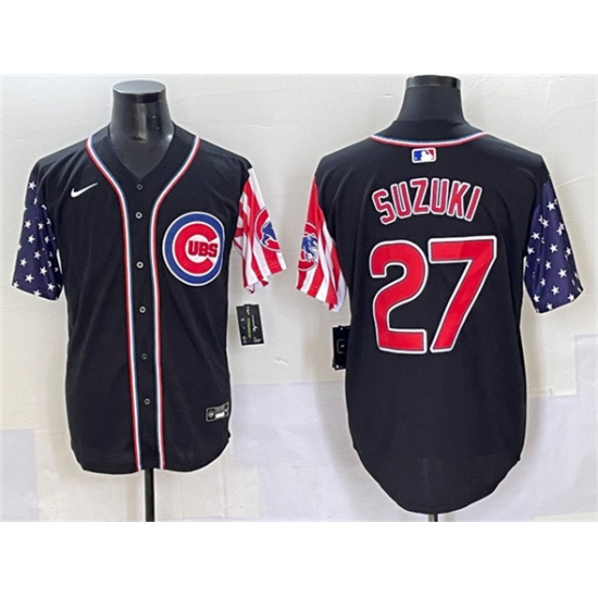 >Men's Chicago Cubs #27 Seiya Suzuki Black 2025 Independence Day Vapor Premier Limited Stitched Baseball Jersey