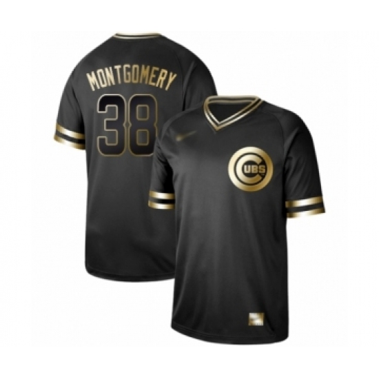 >Men's Chicago Cubs #38 Mike Montgomery Authentic Black Gold Fashion Baseball Jersey