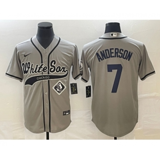 >Men's Chicago White Sox #7 Tim Anderson Grey Cool Base Stitched Baseball Jersey1