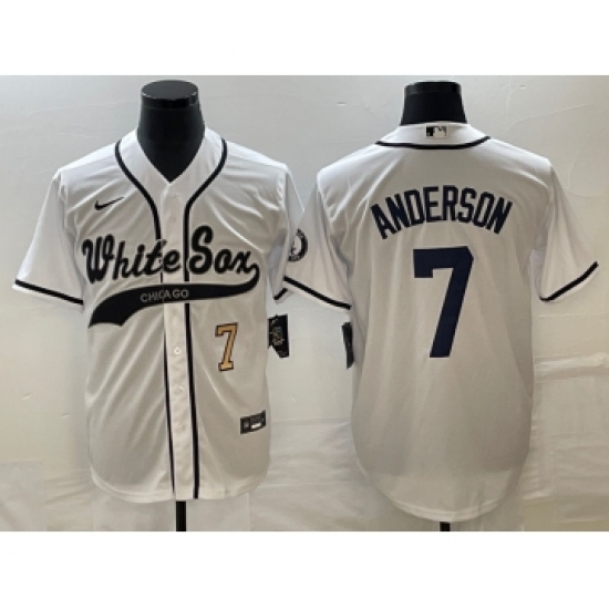 Men's Chicago White Sox #7 Tim Anderson Number White Cool Base Stitched Baseball Jersey
