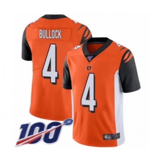 >Men's Cincinnati Bengals #4 Randy Bullock Orange Alternate Vapor Untouchable Limited Player 100th Season Football Jersey