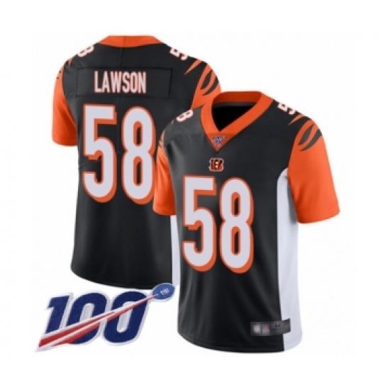>Men's Cincinnati Bengals #58 Carl Lawson Black Team Color Vapor Untouchable Limited Player 100th Season Football Jersey