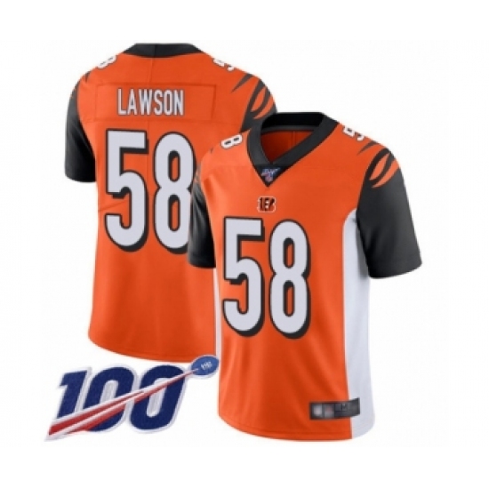 >Men's Cincinnati Bengals #58 Carl Lawson Orange Alternate Vapor Untouchable Limited Player 100th Season Football Jersey