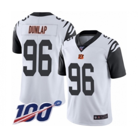 >Men's Cincinnati Bengals #96 Carlos Dunlap Limited White Rush Vapor Untouchable 100th Season Football Jersey