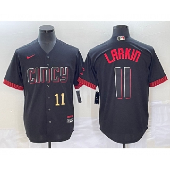 Men's Cincinnati Reds #11 Barry Larkin Number Black 2023 City Connect Cool Base Stitched Jersey2