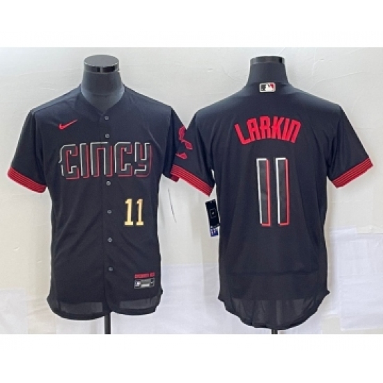 Men's Cincinnati Reds #11 Barry Larkin Number Black 2023 City Connect Flex Base Stitched Jersey 1