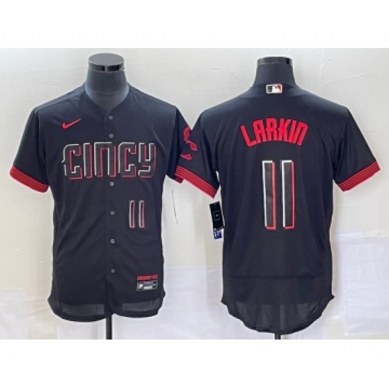 >Men's Cincinnati Reds #11 Barry Larkin Number Black 2023 City Connect Flex Base Stitched Jersey