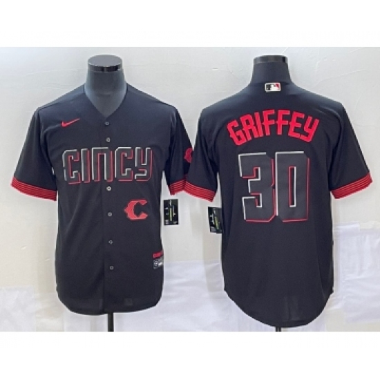 Men's Cincinnati Reds #30 Ken Griffey Jr Black 2023 City Connect Cool Base Stitched Jersey