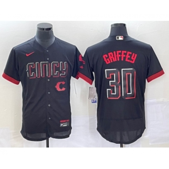 Men's Cincinnati Reds #30 Ken Griffey Jr Black 2023 City Connect Flex Base Stitched Jersey 1