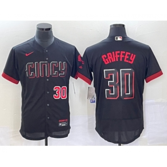 Men's Cincinnati Reds #30 Ken Griffey Jr Number Black 2023 City Connect Flex Base Stitched Jersey