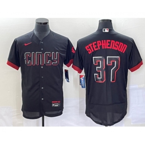 Men's Cincinnati Reds #37 Tyler Stephenson Black 2023 City Connect Flex Base Stitched Jersey 1