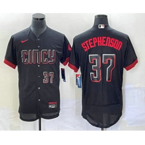 Men's Cincinnati Reds #37 Tyler Stephenson Black 2023 City Connect Flex Base Stitched Jersey 1