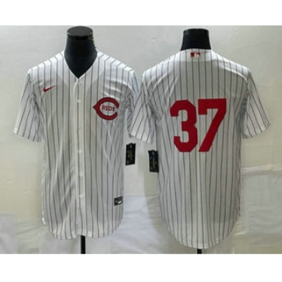 >Men's Cincinnati Reds #37 Tyler Stephenson White Field of Dreams Stitched Baseball Jersey