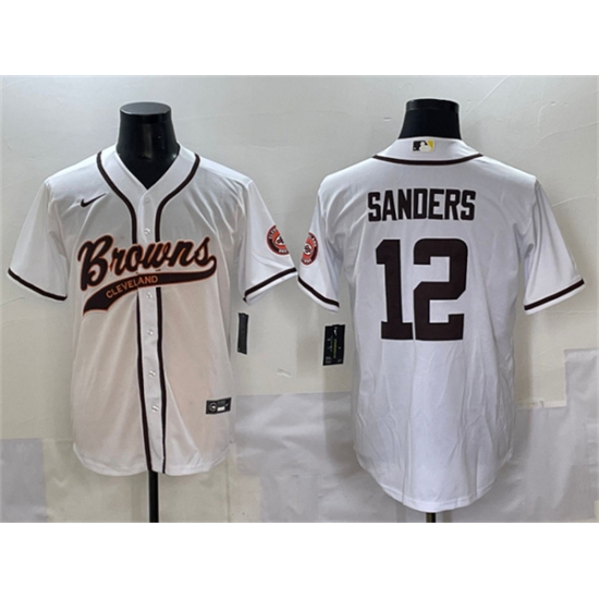 Men's Cleveland Browns #12 Shedeur Sanders White With Cool Base Stitched Baseball Jersey