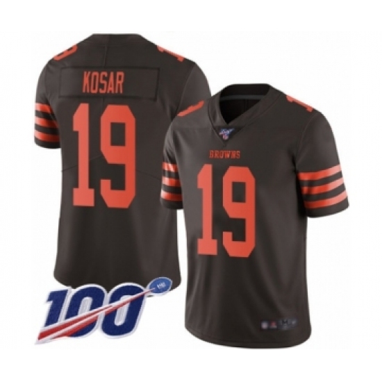 >Men's Cleveland Browns #19 Bernie Kosar Limited Brown Rush Vapor Untouchable 100th Season Football Jersey