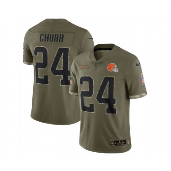 >Men's Cleveland Browns #24 Nick Chubb 2022 Olive Salute To Service Limited Stitched Jersey