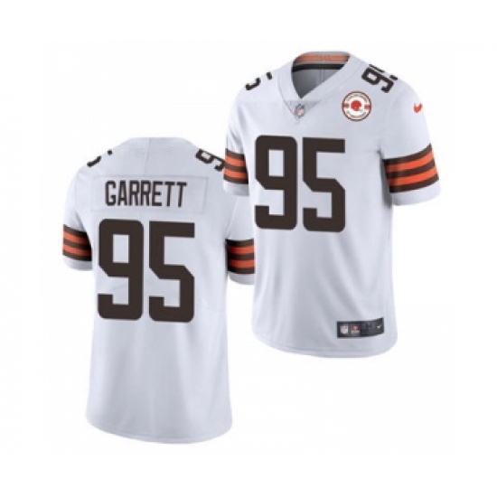 >Men's Cleveland Browns #95 Myles Garrett 2021 White 75th Anniversary Patch Vapor Untouchable Limited Jersey