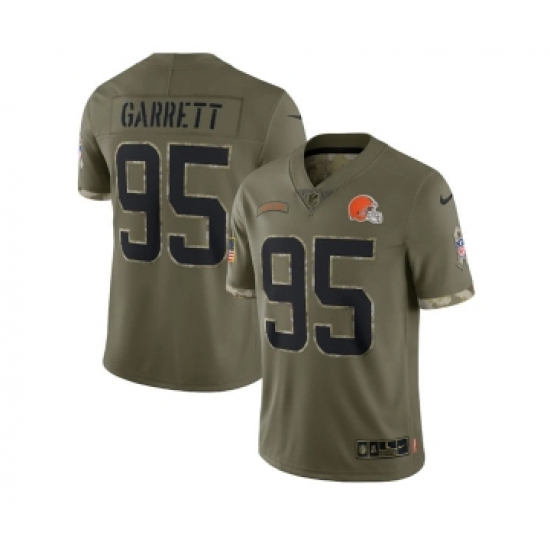 >Men's Cleveland Browns #95 Myles Garrett 2022 Olive Salute To Service Limited Stitched Jersey