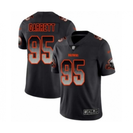>Men's Cleveland Browns #95 Myles Garrett Limited Black Smoke Fashion Football Jersey