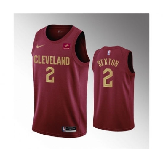 Men's Cleveland Cavaliers #2 Collin Sexton Wine Icon Edition Stitched Basketball Jersey