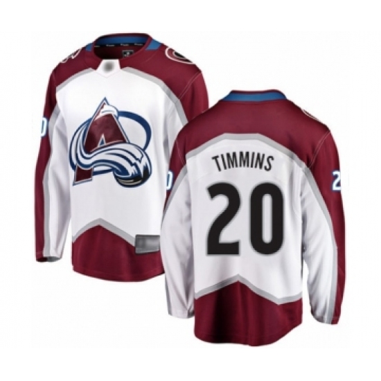 Men's Colorado Avalanche #20 Conor Timmins Authentic White Away Fanatics Branded Breakaway Hockey Jersey