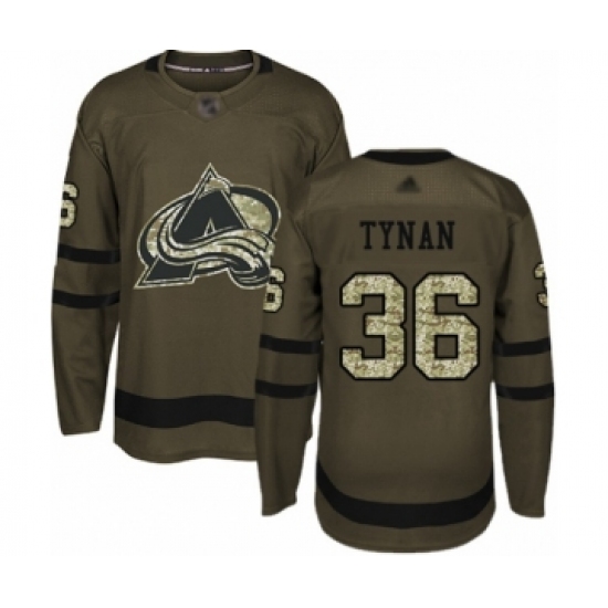 >Men's Colorado Avalanche #36 T.J. Tynan Authentic Green Salute to Service Hockey Jersey