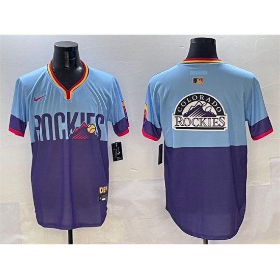 Men's Colorado Rockies Team Big Logo Purple Light Blue 2025 City Connect Limited Stitched Baseball Jersey