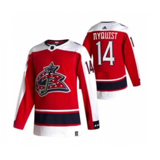 >Men's Columbus Blue Jackets #14 Gustav Nyquist Red 2020-21 Reverse Retro Alternate Hockey Jersey