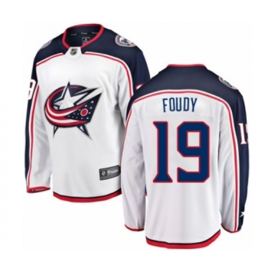 Men's Columbus Blue Jackets #19 Liam Foudy Authentic White Away Fanatics Branded Breakaway NHL Jersey
