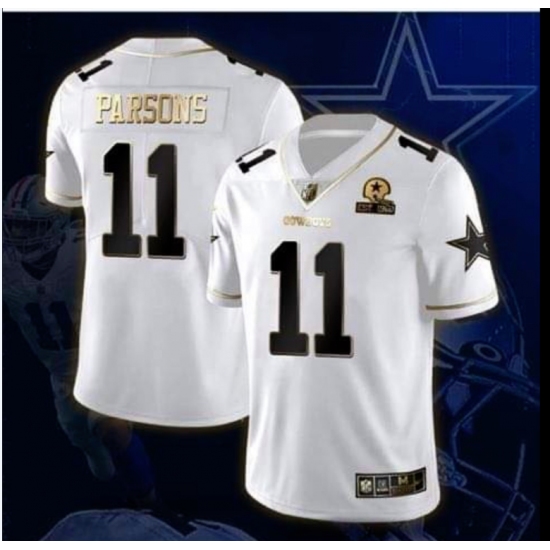 Men's Dallas Cowboys #11 Micah Parsons White Golden Edition With 1960 Patch Limited Stitched Jersey