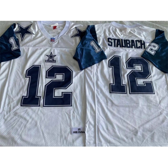 >Men's Dallas Cowboys #12 Roger Staubach White Throwback Stitched Football Jersey