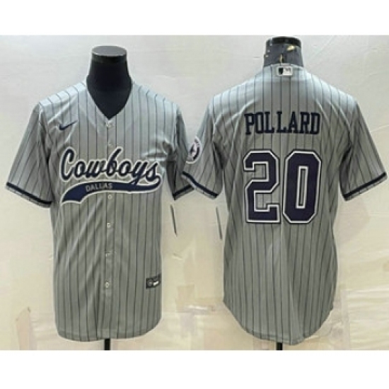 Men's Dallas Cowboys #20 Tony Pollard Grey Pinstripe With Patch Cool Base Stitched Baseball Jersey