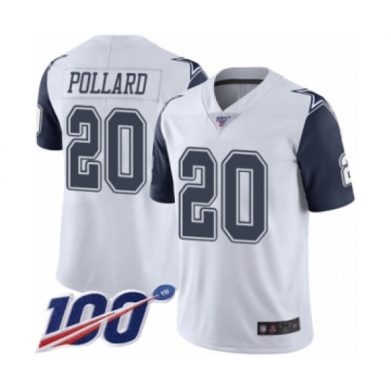 >Men's Dallas Cowboys #20 Tony Pollard Limited White Rush Vapor Untouchable 100th Season Football Jersey