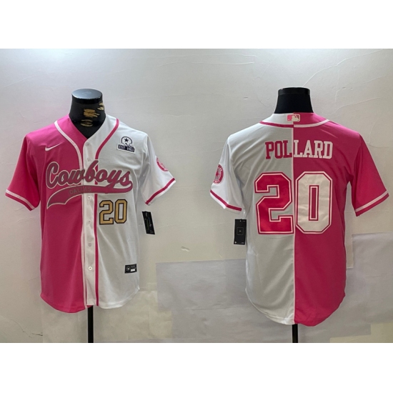 >Men's Dallas Cowboys #20 Tony Pollard Red White With Cool Base Stitched Baseball Jerseys