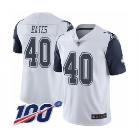 Men's Dallas Cowboys #40 Bill Bates Limited White Rush Vapor Untouchable 100th Season Football Jersey