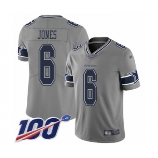 >Men's Dallas Cowboys #6 Chris Jones Limited Gray Inverted Legend 100th Season Football Jersey